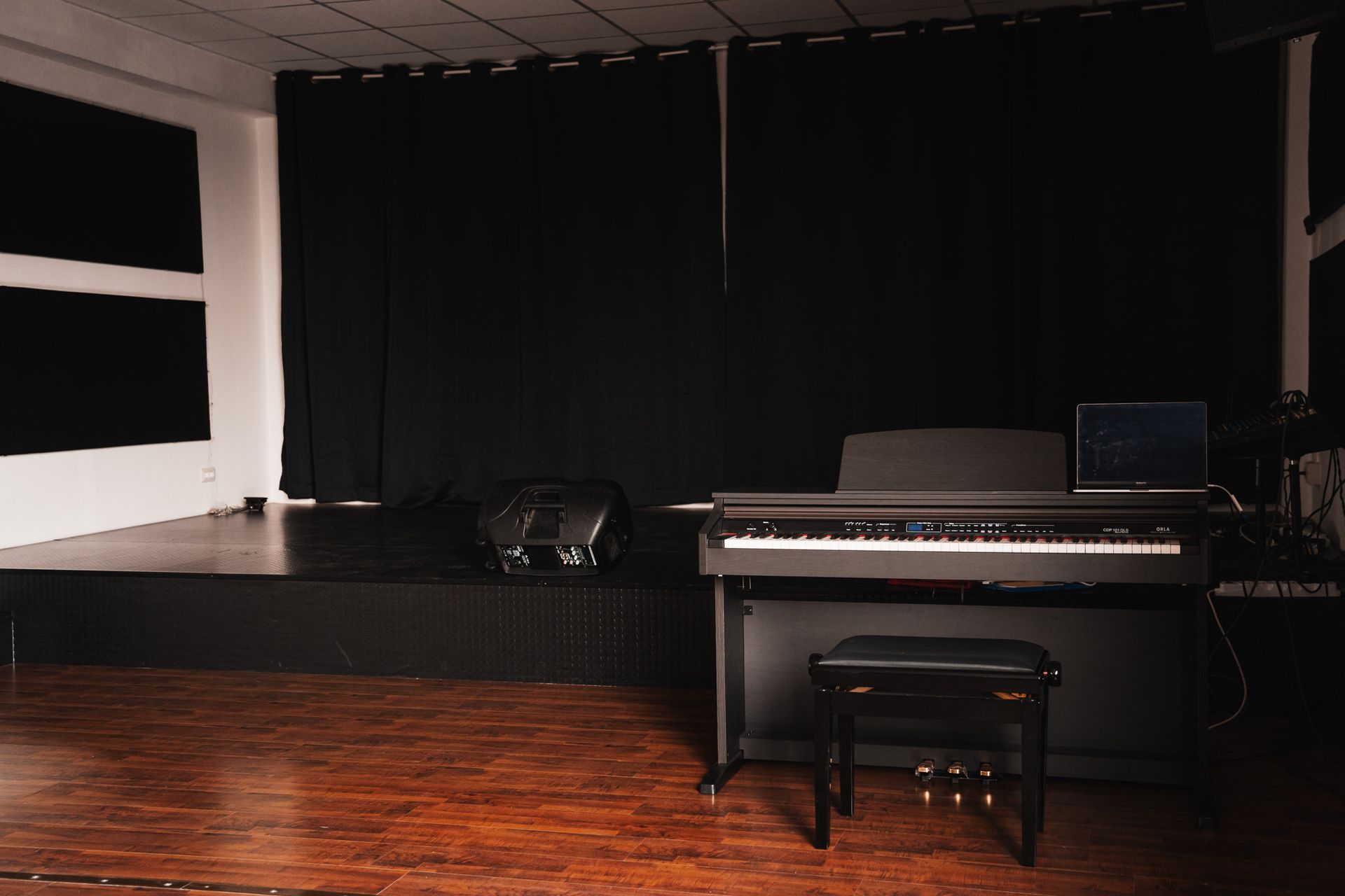 18mq di palco (6x3) ed i restanti di zona platea e/o aula per attività.